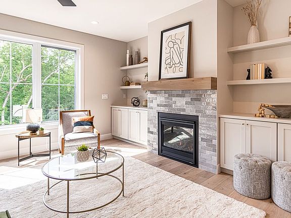 As you walk through the covered stoop and inviting foyer, you'll enter the open concept main living area, including a kitchen, dining area, and great room with built-in cabinetry and fireplace. You'll have plenty of room to entertain with ample seating around a large slab kitchen island and easy access to a four-season sunroom and large back deck.