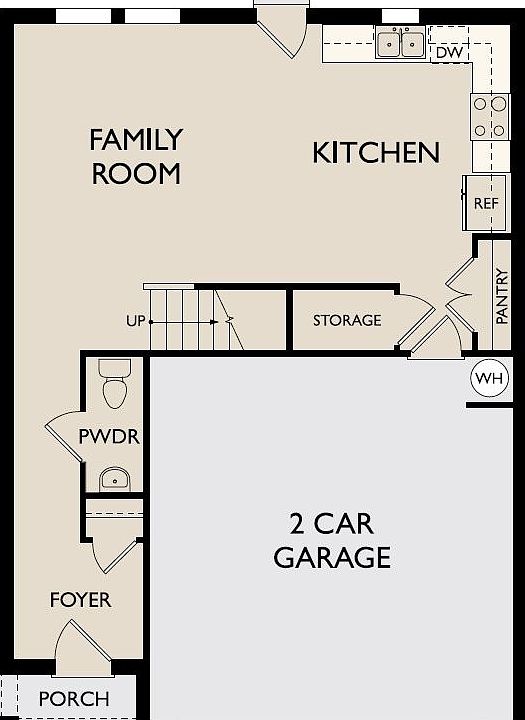 You enter through the covered porch into the foyer and travel down the hall, where a powder bath is conveniently located. As you step into the family room, the stairs leading to the second floor come into view. The open layout flows into the kitchen, which features a pantry, additional storage space, and access to the two-car garage. Upstairs, the primary bedroom includes a walk-in closet and a spacious primary bath. The laundry room is located right at the top of the stairs for easy access. Two additional bedrooms, each with its own walk-in closet, share a full bath.
