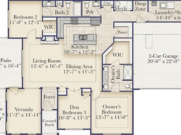 Large center islandOpen-concept layoutGenerous storageWalk-in closetPrivate bath