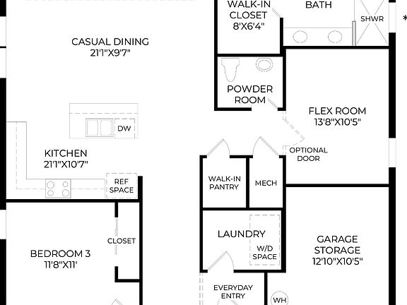 Sizable covered lanaiEasily accessible laundryAmple flex roomAdditional storageExpansive great roomWell-appointed kitchenCasual dining area