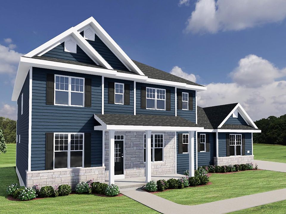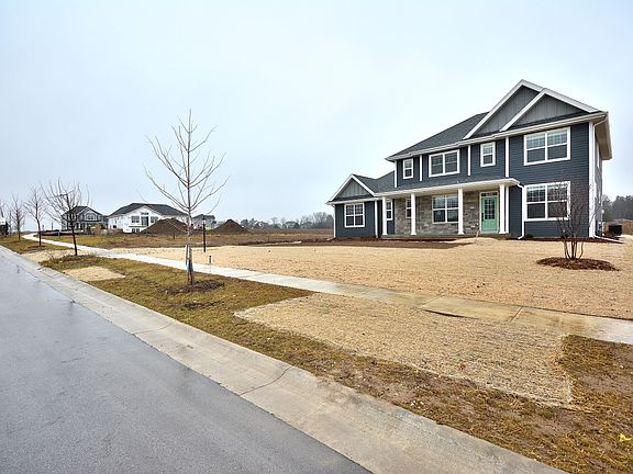 Image is representative of home; colors may vary.All prices, promotions and specifications are subject to change at any time without notice based on the discretion of Veridian Homes. Amenities: 16'x14' patio with picture framing, 9' ceilings throughout entire main floor, Basement features 3/4 bath rough-in for future finished basement, Convenient main floor laundry, Coretec(R) Grande VV662 LVP flooring in "Goldin Oak" throughout the kitchen, foyer, powder room, great room and dining room, Cottage-style 2-story home, with 4 bedrooms and 2 1/2 bathrooms, Custom Auburn Ridge(R) cabinetry, doors and trim throughout the home, Exterior features LP Smart Side(R) in "Brunswick," Halquist(R) stone accents and Pella(R) Encompass Windows in White, Hallman Lindsay(R) "Metro" paint with Orange Peel Texture, Kitchen features large Quartz(R) island in "Calcatta Leon," and Quartz(R) countertops in "Leaden", Kohler(R) plumbing fixtures in the kitchen and bathrooms, Legacy-style kitchen cabinetry painted "Cloud" includes hardware, crown moulding, soft close drawers/doors, and pull-out trash, Open Concept floor plan, Owner's suite features tray ceiling, walk-in closet, plus owner's bath with tiled shower and Quartz(R) countertops in "Carrara Marmi", Stone fireplace in great room, Versatile flex room can serve as a home office, library, or music room