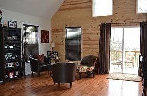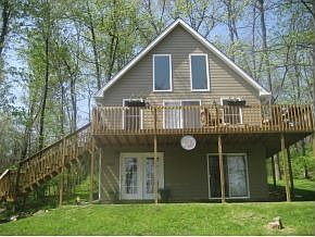 2 Story Contemporary Chalet with many new updates. Soaring ceilings, all new red oak hardwood floors and quarry tile floors, new roof, Pella windows, doors and newer septic related p