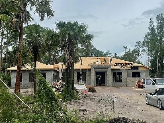 Incredible new construction opportunity from an incredible long-term local builder, an extremely popular floorplan, and full customization potential. Project has not begun yet. This home's sister build is in progress just 2 miles away to view. This one-story model has a great split floorplan with 4 bedrooms, a den/office, and 4 full/2 half baths. An open layout with tall 13-foot vaulted ceiling and clear lines from dining room, living room, and kitchen, making a great layout for family and entertaining. The family room has sliders that lead to oversized 30'x16' covered lanai with summer kitchen, pool, and large 1.25-acre private lot. Bring your favorite toys as there is plenty of room for a boat or RV. Jupiter Farms is an rare community that allows horses and still close to the city/beach.