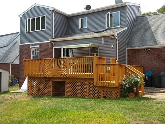 Deceiving exterior: this cape has been extended in the rear to an oversized kitchen with skylight, separate dining area/sliders to large deck. Second floor features huge master suite with walk-in closet; Jacuzzi bath& separate shower. Full, finished basement with bar and third bath. Suitable for extended family living! Updated : 2015-10-11