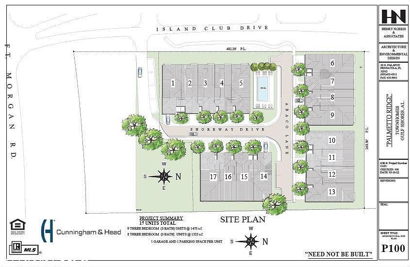 Palmetto Ridge - new construction in Gulf Shores in phenomenal location less than 1/2 mile from Highway 59! Palmetto Ridge will feature units with three bedrooms and three baths on one level. Each unit will feature a private entry courtyard, plank tile throughout, stainless appliances, 3 centimeter granite counter tops in kitchen and baths, subway tile backsplash in kitchen, 9' ceilings and a rear patio large enough for grilling. Each unit will have a single garage and 1 additional parking space. The development is low density - only 17 units and has a swimming pool. Each building will have a metal roof and will be built to gold fortified standards. This property is adjacent to the Fort Morgan walking/biking trail. Need Not Be Built