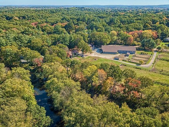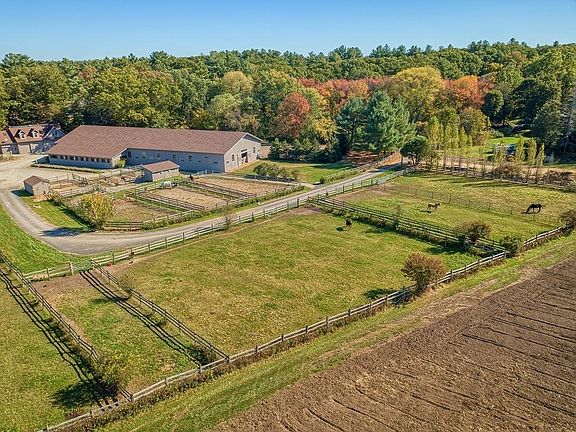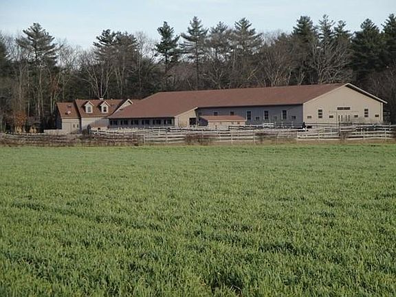 Welcome to Riverfront Farm, 20 min. from Boston/Cambridge, yet feels like VT! No expense spared in designing this truly turnkey 8.5-acre equestrian property! The barns are constructed of southern yellow pine, w/automatic waterers, windows, skylights, excellent ventilation & sprinkler fire sys. Main barn features 6 12x12 stalls, heated tack room, grain room, wash stall, studio & full BA. Upper barn has 5 add'l 10x12 stalls, attached indoor, heated tack room. Add 4 more 10x12 stalls w/stall paddocks. Key features: 172' x 80' indoor arena w/dust free footing, mirrors, windows, & brand-new roof ($70k), 85' x 200' outdoor riding ring, 5 expansive grass pastures & 5 paddocks adjacent to the barns. Over the large 4 bay garage are 2 gorgeous 2br/1ba apts. Add'l structures inc oversized garage, 2 workshops w/radiant heat, 2 chicken coops. Property abuts 16+ acres of "forever farm" land. Positive Cash Flow! Once in a lifetime opportunity!