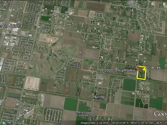 This property is a great investment opportunity located in an area that is booming in business and construction of new homes. This property is about 4-5 minutes away from the new Bert Ogden Arena that is currently under construction. It is close to schools, stores, and beautiful subdivisions. There is a Dollar Store and a new business currently under construction right across the street. There is also a subdivision across this property being developed. This property consists of 3 lots which are being sold all together. Lot #1 and #3 are unimproved land. On lot #2 sits a beautiful 2 story home - 4576 sq ft built in 1981. The home is very nice with very functional floor plan. Home is being sold as is and does need some work. Also on Lot #2 sits a warehouse that is currently being used to manufacture wood shutters. The address for the home is 2000 S. Alamo Rd. If you would like to see home a 24 hr notice is required.