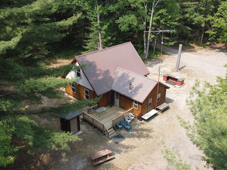Parcel #040-013-303-001-00. Located approx 3 1/2 miles west of the Alger Rd Exit off I-75, is 20 heavily wooded acres (660x1320) with a 1/3 acre pond, a 1,250 sq ft cabin built in 2012, a bunk house for additional sleeping quarters, Buck Pole, shooting range and food plots. Rare find only 40 minutes from Bay City. Cabin offers beautiful wood interior, metal roof, 2 bedrooms, along with 2nd floor loft. 2 wood burning stoves for heat. Owners never brought electricity back to the property, so there is no exact address. You are off the grid!! Stove & refrigerator are propane. Remote start Generator (2 yrs old) included in sale, along with air compressor, solar panel for 12 volt batteries. Septic & well water. Well pump is located beneath the Party Bar in the front of Cabin. Relaxing deck off the back. Fire pit, wood storage area (chopped wood not included in sale).