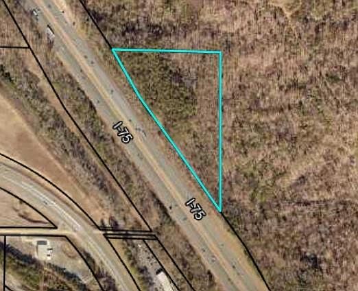 11 acres near I-75 and Hwy 41. Between I-75 exit 285 and 288. This property is surrounded by a larger tract and is physically landlocked. See Documents for photos of these distances: 1. Distance from top of red Top Mountain road ramp is +/-3,770 feet (0.7 Miles). 2. Distance from bottom of Red Mountain road ramp is +/- 2,300 feet (0.44 Miles). 3. Topo elevations at the Interstate is about 750’. Elevation of land just off the Interstate is 746-750’ in the mid-section; 768’ on the southern point; and 792’ at the northeast corner of the property. So, visibility from the Interstate is better than I thought, being just a few feet below the Interstate roadway. 4. Distance from Allatoona Road, preferred route for driveway is +/-1880 feet or about 0.36 mile.