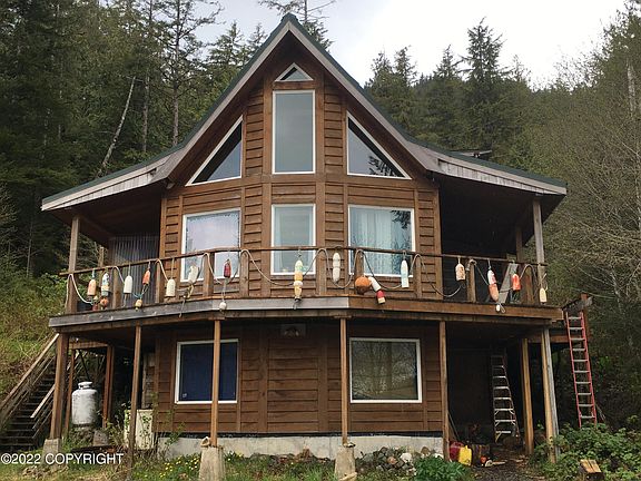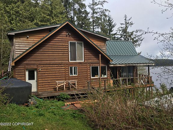 Rare large waterfront home near Hollis Alaska ready for your finishing touches. 4 bedroom, 3 bath. 2,448sq plus a large 1,400sq unfinished basement for storage or could be made into a guest bedroom. Amazing water views from almost every room in the home. Power and cell phone service available at this property.This house is currently occupied and ready for its new owner to move in. It needs some finishing work like flooring and trim, but you could live in it while completing your dream home. Both wood and oil heat. Home is well insulated. Large lot with plenty of trees. Lot also has a carport and several storage buildings.