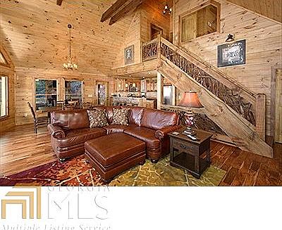 INCREDIBLE MOUNTAIN VIEW just minutes to downtown Blue Ridge in the Aska Adventure area!! This 3 bedroom WITH LARGE LOFT AREA, 3.5 bath PROW FRONT cabin sits on 1.38 acres with a year-round, long-range mountain view and offers many upgrades including two master suites (main level and upstairs), open kitchen w/custom tiled flooring, granite counter tops, farm sink, tiled back splash and open to great room w/stacked stone fireplace and wall of windows showcasing your view, custom tile showers, hardwood flooring on two levels, terrace level includes wet bar, stacked stone fireplace and hot tub deck, outdoor fireplace with large seating area, expansive decking and easy access paved roads.