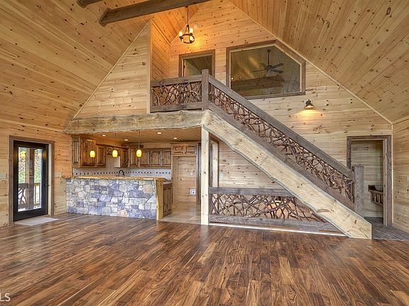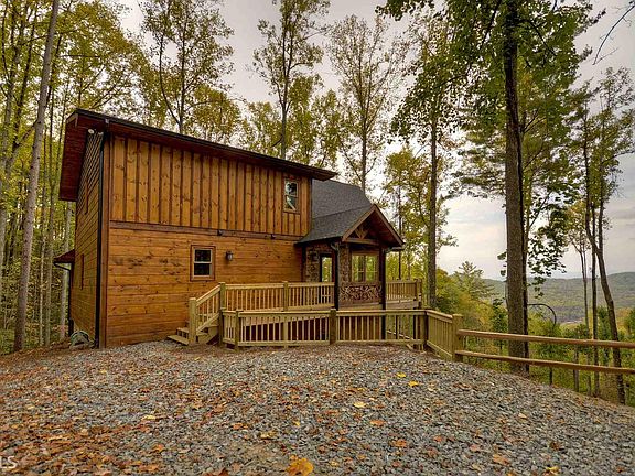 ~VIEW FROM THE CLOUDS~ Amazing mountain top 4BR/3BA Prow front rustic home, Located in the heart of the Aska Adventure area! Fantastic location in a pristine mountain subdivision. Enjoy gorgeous views of the Blue Ridge Mountains and Lake Blue Ridge from your expansive wrap-around porch, or from the Large greatroom with stackstone FP from behind a wall of glass! Large dual masters on both main floor and upper loft area, Middle floor with 2 bedrooms and large rec area, and wrap-around porch, and Finished basement with bunk room, full bath, and even more outdoor living space! custom tile in every bath, Hardwood floors throughout, two exterior FP, and many more spectial features make this Custom cabin a perfect family Mountain cabin!