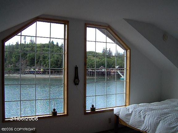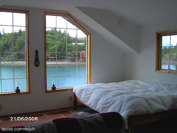 Charming, well-built cottage located on a boardwalk just across the Cove from the Saltry in beautiful Halibut Cove. Deep water allows year 'round access. Upper acerage is sun-drenched meadow. Electricity, spring-fed water, propane cooking make easy-living in this exquisite Alaskan retreat. Great artist's retreat or fisherman's paradise.