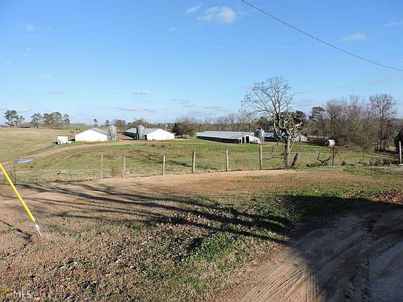 4 Clearspan Poultry Houses on 32 21 farm. Open pastures and 3 bedroom 2 bath brick ranch. Pond, creek, 2 springs, wells and septics in place.