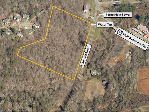 Location, Location! 8.5 acres of prime commercial real estate in the city limits of Dahlonega! City water tap is on site, force main sewer is about 150ft away in the county ROW. Power is Amicalola EMC. Over 1,000 feet of road frontage. Reap the benefits of the high traffic counts on HWY 9 (13,600 cars per day) that pass by this property heading to HWY 400, while also not having to deal with GDOT since Auraria Road is owned by the county. Site distance is wide open on both left and right sides! Seller has invested in grading out an entrance, a well as a 1,000 ft road through the property for ease of walkability and a head start on site plans/development. This property would be absolutely perfect for either a buy and hold investment for the location, utilities and road frontage, OR your next location for your convenient store with the opportunity to add rental cabins to your investment portfolio (see proposed site plan). Convenient Store owners - this would be the last convenient store travelers would pass in Dahlonega until they reach HWY 400/Dawsonville - the next closest convenient store that has quick ingress/egress is 16 miles south. Don't miss this rare opportunity to own one of the very few properties in the entire county that has all utilities, tons of road frontage, no site distance issues, in the city limits, and already zoned highway business. There are only 3 entry points to Dahlonega from 400 - Auraria Road is the southern most entry point from 400 and it is a massive residential corridor - you will not only capture tons of residential impulse motorists, but Auraria also about to explode in traffic count because the 400/60 intersection is beyond its capacity since the Publix was built. This has everything you need for a convenient store - all you need to do is bring your engineer and General Contractor and start digging! *Owner financing available for 50% down and 10% interest