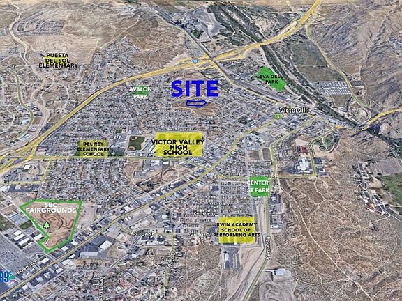 ±3.59 acres vacant land Zoned R3 – High Density Residential allowing for up to 15 units per acre. Excellent location in the heart of Victorville. The site is in nearby proximity and easily accessible to Interstate 15 making for ease of commuting. Housing is in crisis due its lack thereof – possibly multifamily developments could be constructed to cause relief. Avalon Park is within a Frisbee throw of this location – did someone say disc golf? Del Rey Elementary School and Historic Victor Valley High School less than half a mile away. What a gem! Come make an offer!