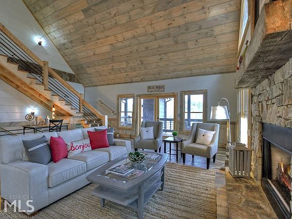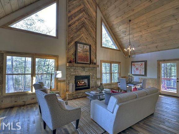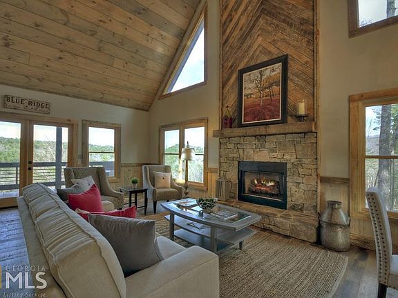 New construction just a "stone's throw" from downtown Blue Ridge... This 3BR/3BA newly built craftsman-style cabin offers the best of both worlds. Surrounded by peace & tranquility, yet located less than 5 mi. from downtown, this gentle wooded lot is extremely convenient, but feels privately tucked away. Complete w/ mtn views from all 3 levels, this retreat offers the perfect blend of drywall & wood, upgraded fin. galore, custom cab., chevron style fireplaces, hardwood & tile flooring throughout, full fin. basement w/ wet bar & an oversized party porch w/ fp perfect for entertaining. This exquisite dwelling that's not only a work of art but completely functional & even offers all 1 level living. W/ dazzling style & dramatic rustic splendor, it's all here...