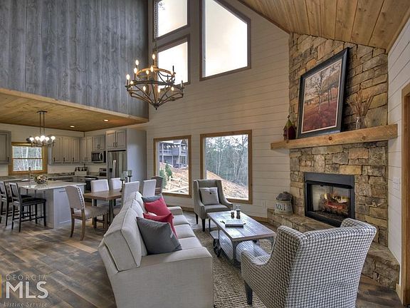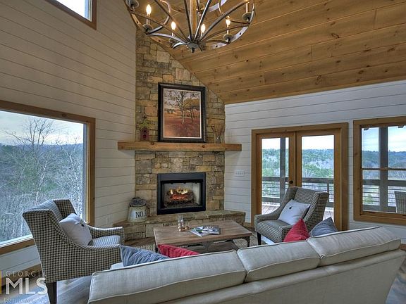 Pizzazz & proximity... to downtown Blue Ridge-just 2 of the highlights of this stunning new construction! Truly a hop, skip, & a jump from downtown Blue Ridge, this 4BR/3.5BA offers the best of both worlds. Surrounded by the serenity of the Blue Ridge mtns, this gentle wooded lot is extremely convenient, but feels privately tucked away. Complete w/ mtn views from all 3 levels, this retreat offers the perfect blend of drywall & wood, upgraded fin. galore, custom cabinets, chevron style floor-to-ceiling fireplaces, hardwood & tile flooring throughout, full fin. bsmnt w/ wet bar & an oversized party porch w/ fireplace perfect for outdoor entertaining. This exquisite dwelling thats not only a work of art but completely functional for part or full-time living.