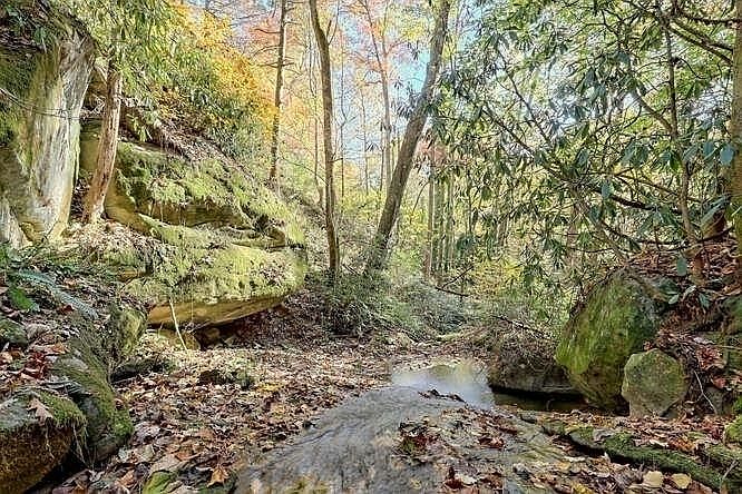 The first picture "Paints the Picture"! This 2 acre wooded lot can give you all the privacy you need, yet be only 3 miles from downtown Clayton. It wouldn't take much for a year-round view. The gentle sloping property is bordered by a creek with small waterfall and wading pond. No HOA. Private paved road. THE SOIL TEST HAS ALREADY BEEN DONE! Make sure you wear your hiking boots so you can explore the entire property.
