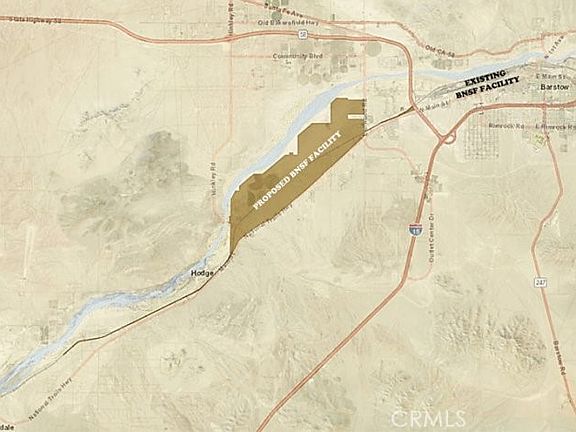 Over 2 acres of land in Barstow! This property is located a short distance from I-215, off of Willow Springs Road near Dale Evans Parkway. It's less than five miles as the crow flies from the Walmart Distribution Center, and less than ten miles as the crow flies (estimated) from Bellevue Heights at the North end of Victorville. Great investment opportunity!