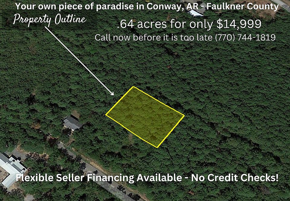 Easy living awaits you on this stunning 0.64-acre gem in Faulkner County, Arkansas. This property is nestled in a prime location in Conway, just 3 minutes away from Beaver Fork Lake. Drive just 10 minutes south and you will reach downtown Conway where there is the University of Central Arkansas, Conway Regional Medical Center, and many more interesting sights and sounds. Conway combines modern amenities of a booming metropolis with a charming small-town atmosphere. For those who want to learn about the culture and history of Conway, there are places to explore such as the Cadron Settlement Park, the Baum Gallery at the University of Central Arkansas, and the lovely museum-style gallery, Art on the Green. There is also arcade and bowling fun at Conway Family Bowl. What are you waiting for? Call or text Kathy at (770) 744-1819 NOW! Or email land4acause@gmail.com www.land4acause.com Pricing Details: Cash Price: $14,999 Property Details: Parcel #: 0297-00022-000 Property address: CONWAY, AR, 72032 Subdivision: LAKE BEAVERFORK HEIGHTS County: Faulkner County State: Arkansas Parcel Size: 0.64 Acre Legal Description: LOT 6 & 7 BLK 2 LAKE BEAVERFORK HGTS FD 50 Land Use: RESIDENTIAL LOT Property Type: VACANT GPS Center Coordinates: 35.131200, -92.464300 GPS Coordinates (Corners): 35.131033, -92.464629 35.131416, -92.464615 35.131414, -92.463945 35.131029, -92.463962 Tax Amount: $58.26 Google map link: https://goo.gl/maps/DL76fiFUhz92RHzV9 *Potential buyers are responsible for conducting their own due diligence and verifying data.