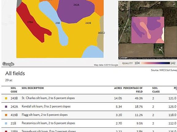 29 (MOL) tillable acres in Boone County, currently leased for the 2019 season. see photos for soil and yield information.