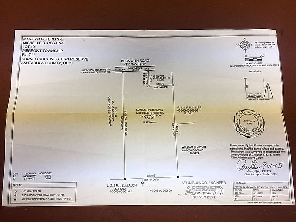 Ideal location for your custom home, hunting and/or recreation! 18.48 acres on Beckwith Rd in Pierpont Township. This lot is fully wooded with mostly hardwood trees. Plenty of Oaks dropping tons of acorns attracting much wildlife. Excellent hunting for deer, turkey and squirrel. There is a seasonal creek that runs east to west across the property about mid-way back from the frontage. Potential timber opportunity and all mineral rights to transfer. For navigation use 6672 Beckwith Rd, this will identify as an old homestead that borders the northeastern boundary of the property. The property currently has no culvert or driveway installed, parking on road only. To discuss or walk the property call Ron Moye at (216) 470-6163.
