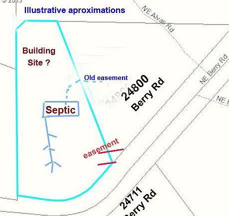 1.22 Ac parcel on Berry Rd. Possible building site on upper lot;. Brush cut along property lines & in known pin positions. Nice video on rmls. See above on UNWARRANTED septic included at no cost. Public water at the street. Easement access off Berry Road.