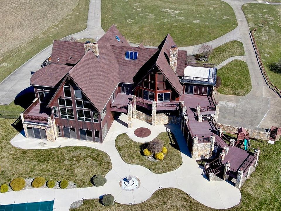 The most unique home in the Ohio Valley. Large luxury home with elevator, large master suite , 5 car garage and Infinity pool on 12.5 beautiful acres. Spacious family room with attached full kitchen. You have to come see the view of the hills of West Virginia. Beautiful!