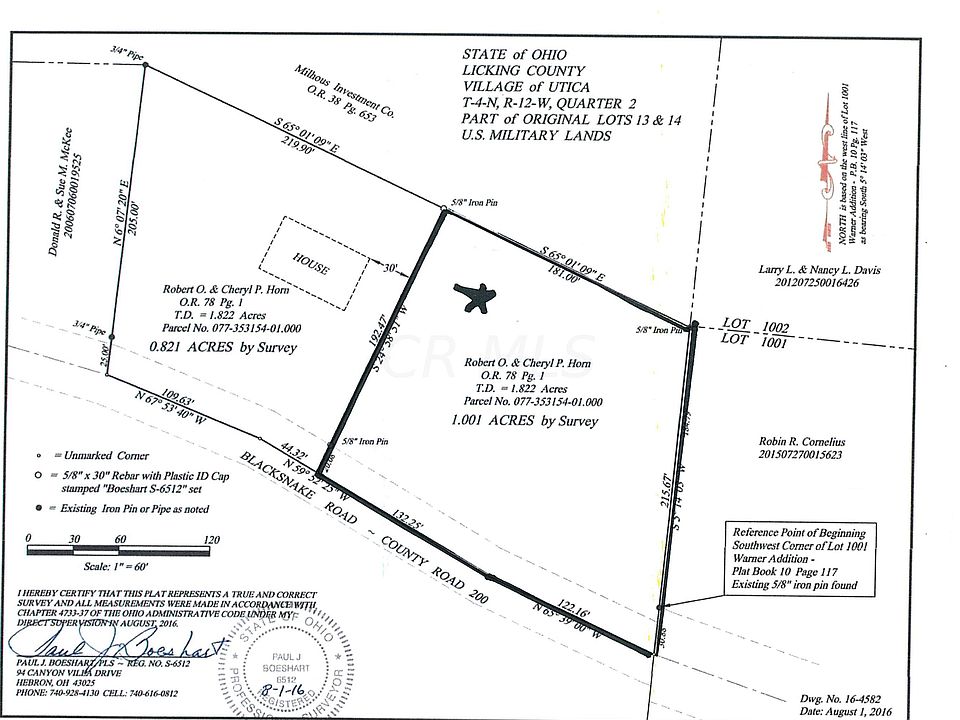 Convenient location on outskirts of Utica on Blacksnake Rd. Sewer line is across the street. Location to water line we are working on. Nice potential building lot. Lot is located on east side by Blacksnake just before Berrimore Dr.