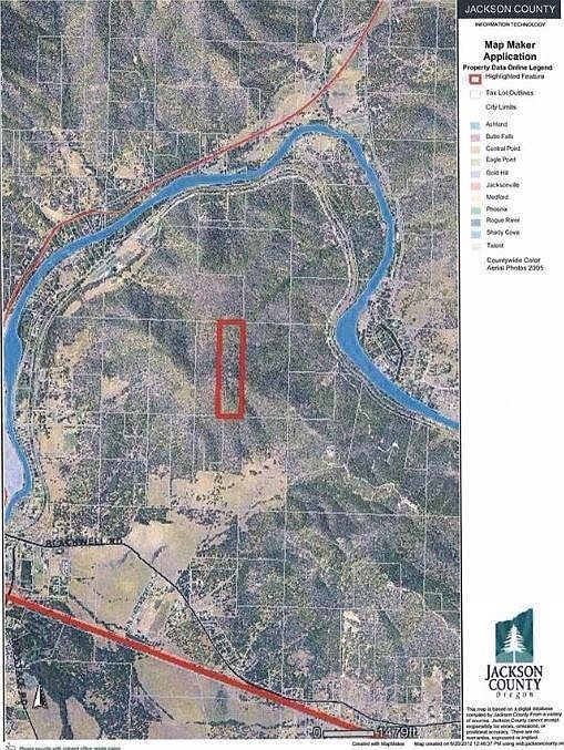 Own A Piece Of History! 40 hilltop acres zoned woodland resource (WR) with views of Table Rock, the Rogue River and most of Southern Oregon! It was once a prospering gold mine and has great potential! Buyer should do own due diligence concerning home site.