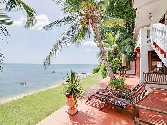 Prop ID 1331- Rincon Bo Barrero. Oceanfront Spanish Caribbean style cottage, steps from the world renown Horned Dorset Primavera Hotel. With over 100 feet of semi-private ocean frontage, featuring spectacular views of the crashing waves, vivid sunsets, lush gardens with fruit trees..