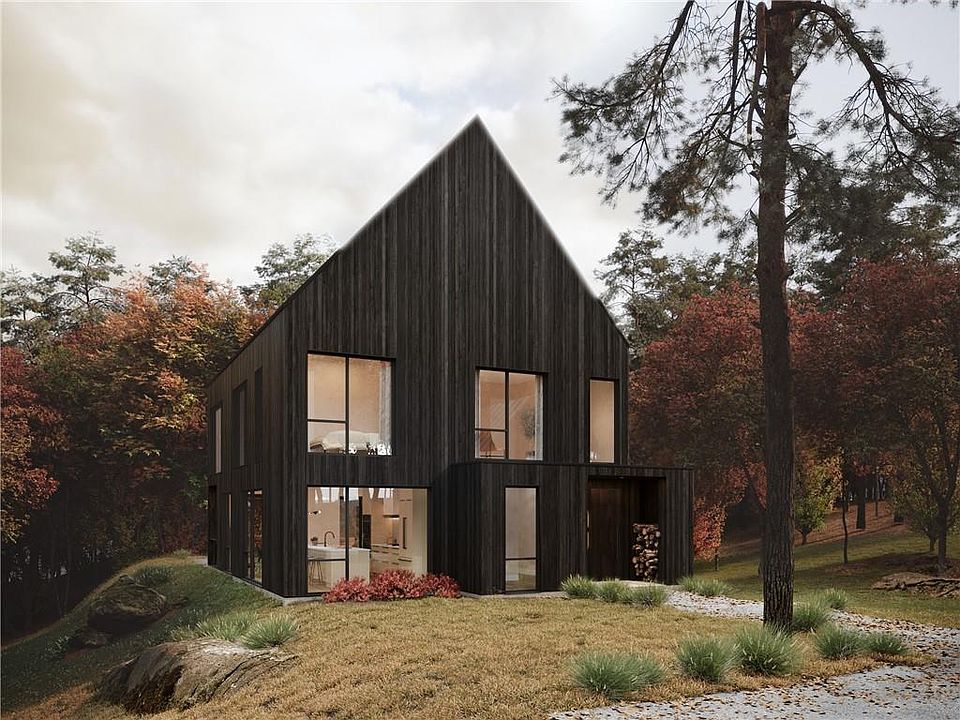 (To Be Built) Fernwood is a modernist cabin, in perfect context with the Hudson Valley setting. The architecture responds to the natural terrain of the siting with a high pitched gable roof two story residence clad in natural cedar shake. Fernwood is sited on 5 private primarily wooded acres accessible from a quiet country road and surrounding serene landscapes. The residence showcases interiors with natural textures and a luxurious modern simplicity. A quintessential country property minutes from the villages of Rhinebeck and Red Hook. The architecture is comprised of a singular two story structure with acutely pitched gable roof clad in cedar shake siding. The residence entry is superimposed on the volume with an outset porch with contrasting cedar cladding and integrated wood storage a play with natural textures that is sophisticated yet subtle. Living spaces on the main level are open plan, circulating around a central utility block, and share views to the outdoor landscape. A covered back porch is inset into the architecture and similarly clad in a contrasting texture the perfect spot for a quiet morning or evening entertaining. A detached two car garage is included nearby, with a complementary architectural style. Continuing from the staircase onto the upper level are two additional guest bedrooms with generously sized shared bath and counterpoint with the spacious primary bedroom suite with freestanding bathtub, shower, double vanity and WC. Exterior living spaces offer options for upgrade including pool and patio, sauna, outdoor kitchen and others to customize to your specific lifestyle. The residence's interior design features luxury materials including oak hardwood floors, designer finishes, Danish cabinetry, Bosch appliances and high efficiency HVAC. Includes septic, private water well, underground utilities and driveway. Designed and built by Upstate Modernist - Rhinebeck & NYC based architecture firm and builder.,AboveGrade:2350,Cooling:Heat Pump,Zoned,EQUIPMENT:Smoke Detectors,Water Filter,FLOORING:Tile,Wood,FOUNDATION:Concrete,Heating:Zoned,OTHERROOMS:Family Room,Foyer,Great Room,Laundry/Util. Room,ROOF:Metal,Unfinished Square Feet:400,Warranty:Yes Additional Information: ParkingFeatures:2 Car Detached,