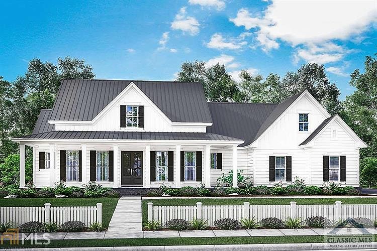 Pre-construction, to be built. The Farms at Bold Springs-Tract 3. This 3-bed farmhouse plan features a wrap-around porch that emulates classic country styling. The beautiful formal entry and dining room open into a large open living area with raised ceilings. The large kitchen has views to the rear porch and features an island with eating bar as well as a large pantry. The 3 bedrooms are well-sized and all include large walk-in closets. The guest bath is large and offers two sinks and a private bathing area. Home features many more upgrades.