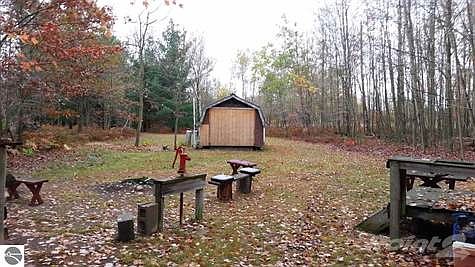 JUST OPEN THE GATE and cruise the whole property on the wide groomed trails throughout. Beautiful property with a mix of mature trees, hundreds of new seedlings, and groupings of caged fruit trees planted throughout the property.A Hunters dream with hunting blinds, food plots,and a pond. The property is high and dry for the most part with a few low swales for good hunting. A clearing that is used to park your RV, have a campfire, and has a shed for all your storage needs. Secluded but just a few miles from the Rainbow Bar/Restaurant for some of the best Pizza and Perch in the area. Electricity available at the road.