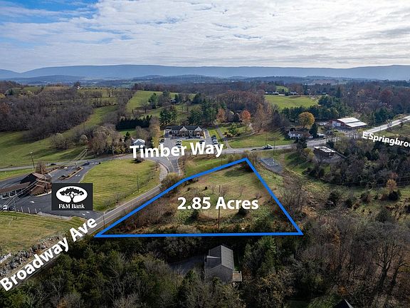2.85 Acres at the corner of Broadway Avenue and Timber Way near the Town of Broadway and in close proximity to Broadway High School. The property is located across Broadway Avenue from F&M Bank and is ideally situated for a commercial or residential development upon rezoning. There is a water retention area owned and maintained by VDOT between this property and Timber Way.