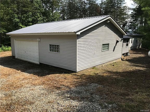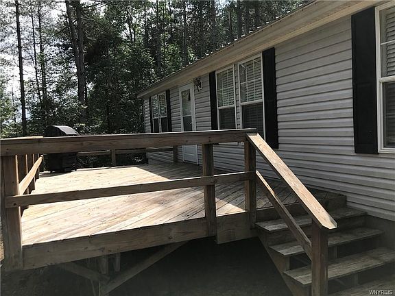 Secluded wooded setting with 10+ acres, offers enjoyment all four seasons in the Southern Tier. Only minutes to Ellicottville. Large home with two master suites, a bunkroom, plus fourth bedroom and additional full bath. Open concept throughout kitchen, dining, living area w/ WBFP and glass block, custom bar w/ granite top. Space for the entire family to gather after their outdoor activities. Heated two car garage, with extra space for your snowmobiles, ATVs, and other outdoor gear! A covered walkway connects the garage and home for extra storage and protected access during the cold winter months, leading into the mudroom/laundry room for easy entrance and clean up! Original owners have used as their recreational second home to enjoy the Ellicottville area and activities that come with it.