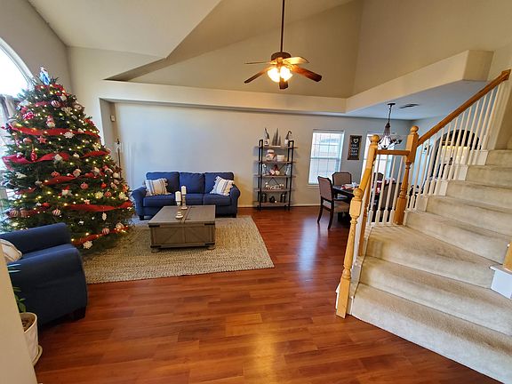 Fantastic home with bright open space welcomes you. If your looking for a downstairs 2nd Master or guest quarters this has one. Cathedral ceilings with a lovely winding staircase catches your eye upon entering. Gorgeous wide planked dark laminate flooring adorn the 2 living and dining area. Lovely tile floors in kitchen and all baths. A beautiful fireplace in spacious open living area which opens to kitchen. Stainless Steel appliances all stay! Master suite has garden tub and separate shower, double sinks and a huge walk in closet. Off of the Master Bedroom is a balcony. Covered porch in back off kitchen. 3 BR's have walk in closets all others have full wall closets. Refinished countertops (not stone); Completely redid whole backyard including sprinkler system