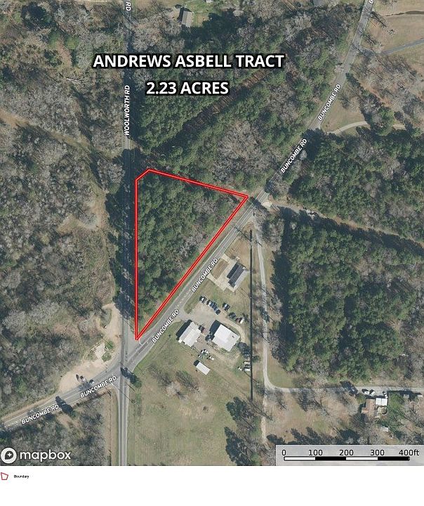 This 2.25 acre wooded lot is located on the northeast corner of Buncomb Road and Woolworth Road with 581' on Buncomb and 513' on Woolworth.