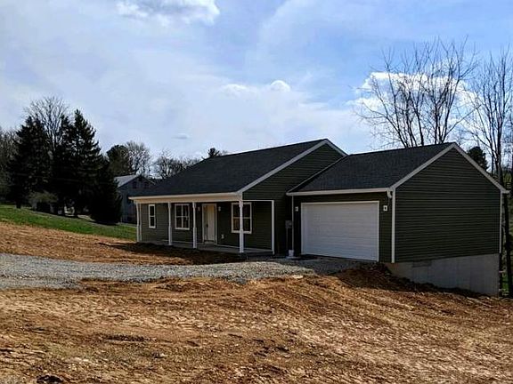 NEW CONSTRUCTION, rancher on .75 acres, 3 bedroom 2 full bath, full unfinished basement with bath rough-in, daylight drain, 2 car garage, paved driveway, 6 foot covered front porch with recessed lighting, 30 year shingles, vinyl siding, open floor plan, combo kitchen/living/great room with hardwood flooring, welcoming entrance with bench seat and cedar lined storage cubbie, carpet bedrooms, baths have LVP flooring and ceramic showers, ceiling fans in all bedrooms.