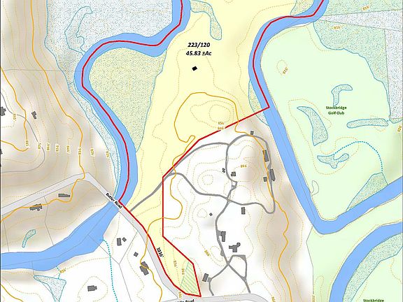 Price reduced and now also available as 4 lots: 35 acres at $950,000 and 2 one acre lots for $125,000 along Butler Rd. Longfellow's Oxbow consists of 45 acres within walking distance of the center of Stockbridge. This large undeveloped parcel offers Views, Privacy, Open Space and a mile of River Frontage. Ideal for a premiere home or homes with vast open maintained hayfields, and views to Naumkeag, the back meadows of Norman Rockwell Museum and overlooking the Stockbridge Golf Club. Once used as a polo field, there is a run-in shed for horses. Longfellow's Oxbow is named after the poet Henry Wadsworth Longfellow , who once owned the land. With high conservation potential, it is possible to both build and conserve in this highly desired Stockbridge location.