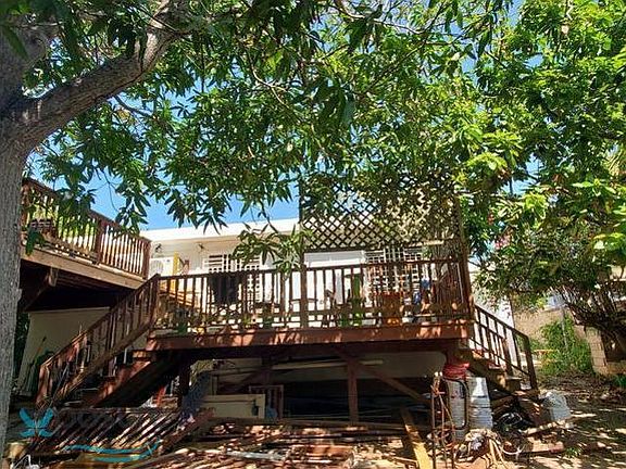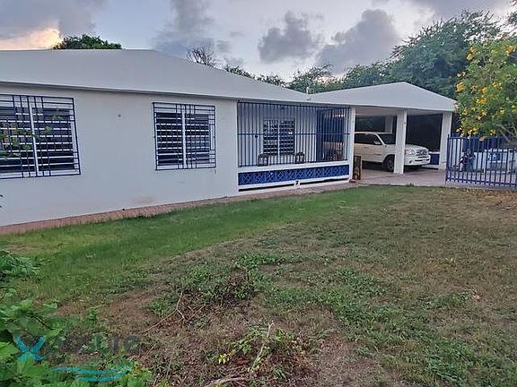 Property at walk in distance from the beach, located on the main road 4466 of Bo. Bajuras. The house has a corner lot of 1,000 s/m. With many fruit trees and shade. On the back it has two wood deck and 2 concrete storage. The lot has a brick fence with two gates on one side and ciclon fence on the rigth side. Ample doble garage, roof recently seal. The Concrete structure is in good conditions with a comftable floor plan. Split unit a/c. Ocean view from the roof. Excelent for investment and airbnb..