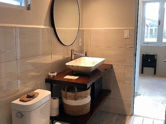 LOCATION LOCATION LOCATION In beautiful prestigous secluded barrio barrero without the traffic or population density of Puntas in Rincon only a few meters from the exclusive 5 star Horned Dorset Primavera Resort. 5 minute drive to the Sports Complex with free outdoor exercise equipment,track, pickle ball, tennis. New Houses in Neighborhood now being built $1-12 million. I restored this house for myself but decided on another option on my family land across the street. Completely restored. All new inside and out Sound proof hurricane glass windows and doors 3 minute WALK to ocean where you can swim with Turtles. Spectacular rooftop ocean views, stair to roof just installed where you can add a deck or build your own FULL ocean view second level. Imagine your own cliff edge infinity pool Also included is the piece of land above the house on the ridge where you can build pool/patio or small guest cottage with FULL VIEW ocean pool. Because it is On a small hill near ocean it will NEVER get hit by storm surge. Full AC runs on solar . You can run AC 24/7 for $195 per mo Windmar payment or get $ from LUMA your choice and NEVER be without power. Comes with WindMars excellent service and warrantee.