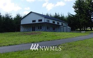 40'x 72' building, Pole & Truss type bldg, metal roof & sides, concrete floor. All doors & windows in place, inside is open shell - designed for two story living quarters & 2 car garage, plus drive thru for motorhome. 2 - 14-foot overhead doors. Roughed in plumbing in place and connected to septic and drainfield. 400 amp electric panel. Open porch on two sides. Blacktop driveway. 2nd story floor joice & other framing material will be left. Approximately 3000-sq. ft.