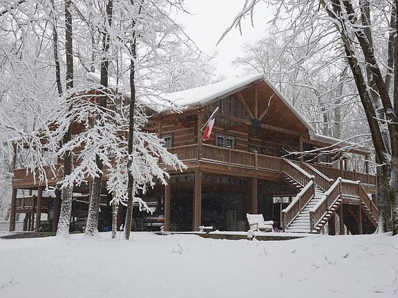 INCREDIBLY PRIVATE, PEACEFUL & rustic escape to Nature!! Address is not actual address (owner supplied pictures). Do not enter driveway or property without a scheduled showing! Home being sold AS IS(deck needs some repair). Escape to tranquility in this stunning 3-bed, 2.5-bath custom log cabin nestled on over 5 acres of park-like beauty. Just minutes from downtown, this serene retreat offers the perfect blend of rustic charm & modern comfort. Enjoy the abundant wildlife with deer frequently roaming the property. Spacious interior features a cozy fireplace & a custom country kitchen. Beautiful old reclaimed wood floors! Primary suite offers a private oasis with a luxurious en-suite huge shower. Step outside to a large screened deck perfect for entertaining or simply soaking in the peaceful surroundings. Countless custom features. With some work your dream cabin awaits! Elevator entrance from ground level. Do not miss your opportunity to own this completely unique & special home!