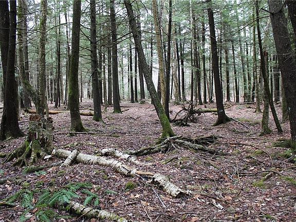 Nice level land with wide variety of trees of various age. Hard wood stand along abutting field and nice hemlock stand on the back acreage. This property would make a nice place for home or camp. Very peaceful location with stream running through center of property. Easy access from paved road with power at road. Some access roads exist on property. Enjoy abundant wildlife and solitude on this nice property.