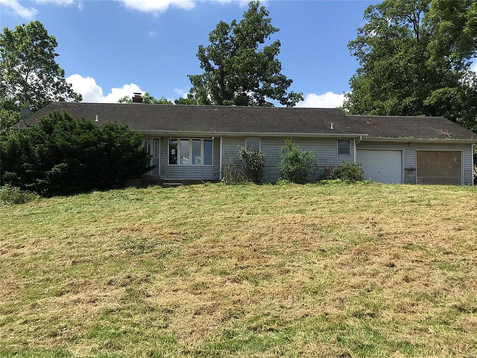 This sprawling ranch style home offers 1424 square feet of living area on the main level. The home offers a master suite with private bath. At the opposite end of the split floor plan, there are an additional 2 bedrooms and full bath. The living room offers cathedral ceilings and a fireplace. French doors lead to a deck overlooking the backyard. The partially finished, walk-out basement offers a rec room with bar and another full bath. The home sits on 2.74 acres and offers a 2 car attached garage as well as a couple storage sheds, chicken and rabbit houses. With some elbow grease, you can make this your dream home. SpecialListingConditions: Foreclosure