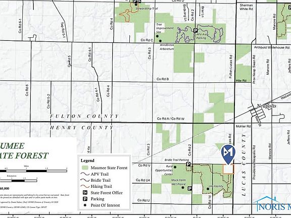 Asking just $13,500 per acre for this tiled and level 41+ acre parcel adjacent to the 500+ acre Maumee State Forest land and Horse Trails. Potential uses are; Farming, Home Site(s), Rectreational, Horse/Animal Farm. Almost a square parcel (~1,345' x 1,345') with full road frontage on 2 sides. Liberty Center Schools.Soil types; Granby loamy fine sand, Ottokee fine sand, Hoytville clay and Tedrow loamy fine sand.