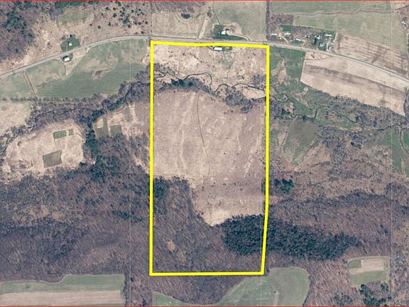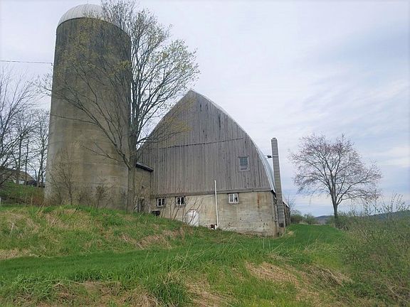 Barn and camp with views overlooking the stream, timberland, and pastureland. Enjoy the warmth of the wood stove in this unique camp situated in the lower level of a large barn. It has all the amenities of home including a kitchen, full bathroom, septic, drilled well and plenty of room for storage. Field consisting of golden rod, young brush, and apple trees slopes up the hillside adjoining 25 acres of woods. Existing fence surrounds the open field and has pastured cattle in recent years.