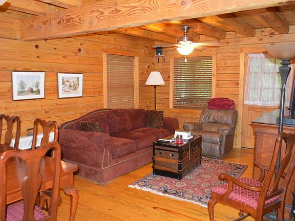 Privacy at its best. 1.75 story log home in mint condition on 9.83 wooded acres. Home has front and rear covered porches. Interior down stairs has kitchen, dining area, living room, master suite, 1/2 bath and laundry room. the upstairs has large loft bedroom, 2nd bed room, office and full bath. Heart of pine floors through out. Heat pump for heating cooling and wall propane heater. House in move in condition. 24 X 40 detached two car garage with loft for storage and wood shed. small stream at rear of property. 45 minutes from Roanoke.